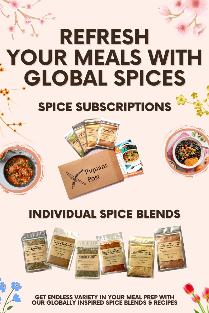 Piquant Post was inspired by memories of far away places; the tantalizing aroma of spice markets, the grounding taste of home-cooked family meals, and the unmistakable character of authentic dishes. Elevated and reimagined with accessible recipes that consider what’s in season, we bring the world’s flavors to your kitchen through chef-developed spice blends. Save us a plate.