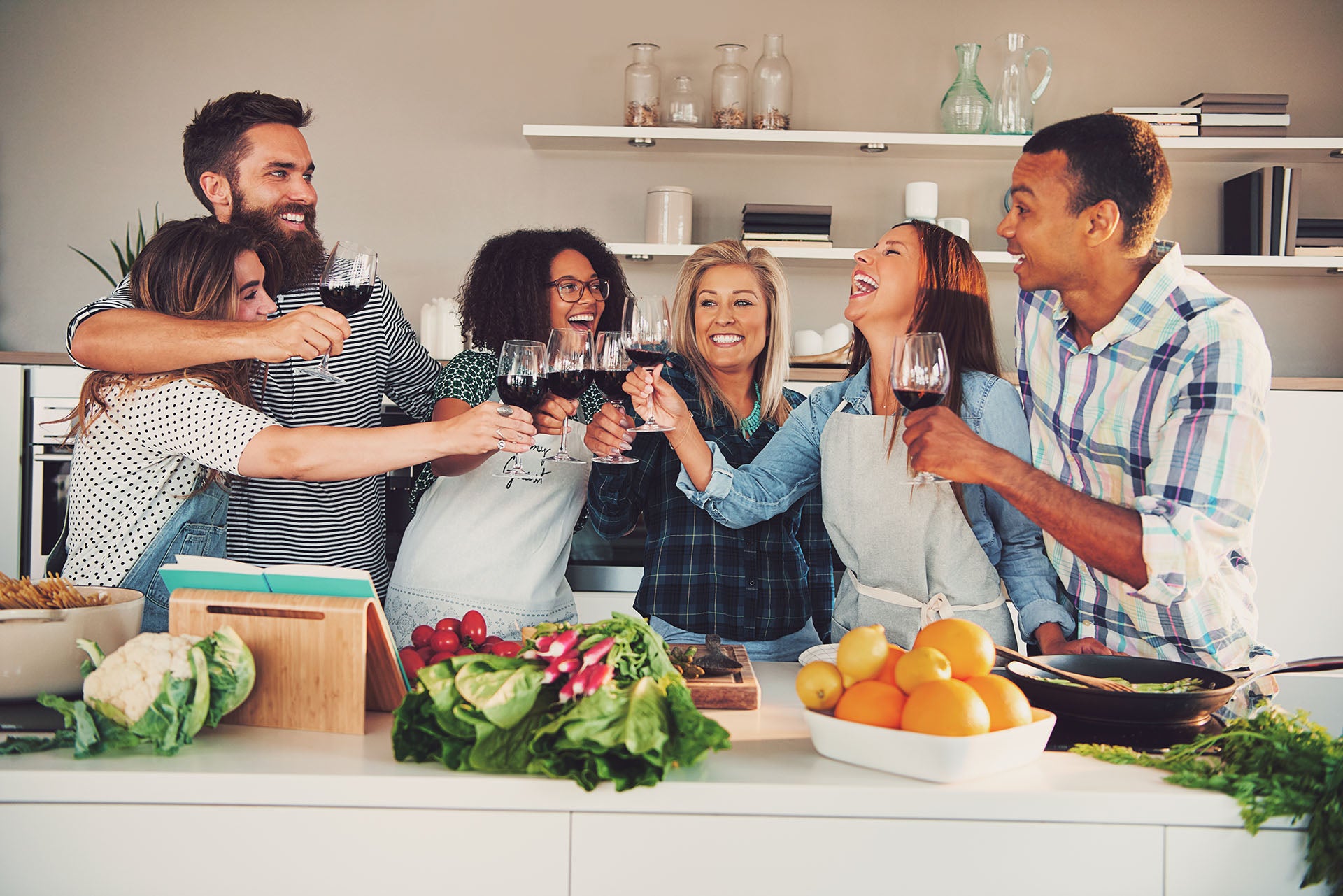 Or, stand on a chair and ask your friends to keep some hands on their settings to get the perfect group overhead shot of a communal meal