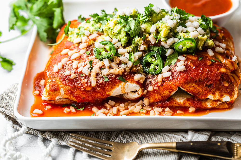 Burritos are remarkably easy to make at home and allow you to customize your meal. Our vegan Burrito Mojado has tons of authentic Mexican flavor, from the Chipotle salsa and creamy guacamole to the spicy sauce and tangy vegan cheese coating every bite. Chipotle peppers are jalapeño peppers that have been dried and smoked, lending a much more complex flavor than the herbaceous flavor and spicy heat you get from fresh jalapeños. Our proprietary Chipotle Spice blend is expertly crafted with aromatics, savory herbs, smoky heat, and savory notes that make Mexican cuisine so good. It only delivers a mild to medium heat that you can customize to your liking by adding other spicy ingredients, be it freshly sliced chilis, hot sauce, or even a pinch of cayenne pepper.