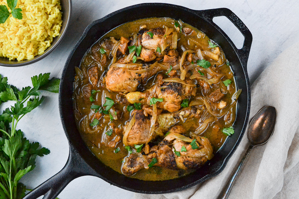 To exemplify the idiosyncrasies of dried lime, our chefs created a Persian lime chicken recipe featuring our Persian Dried Lime spice, made with 100% pure dried Persian lime, which we grind to unlock the magic aroma. Chicken thighs are marinated in a dried lime, turmeric and olive oil mixture and rest for at least 30 minutes, before being seared and nestled into an onion, brown sugar and dried apricot (optional) sauce, then baked in the oven until perfectly tender. Sweet and sour with an alluring tang from the dried lime, this Persian chicken is bursting with flavor and excellent over fragrant rice, hearty grains, couscous or a leafy green salad. Try our Persian dried lime in marinades, soups, stews, ceviches, dips or any dish that you want a bolt of citrusy lightning.
