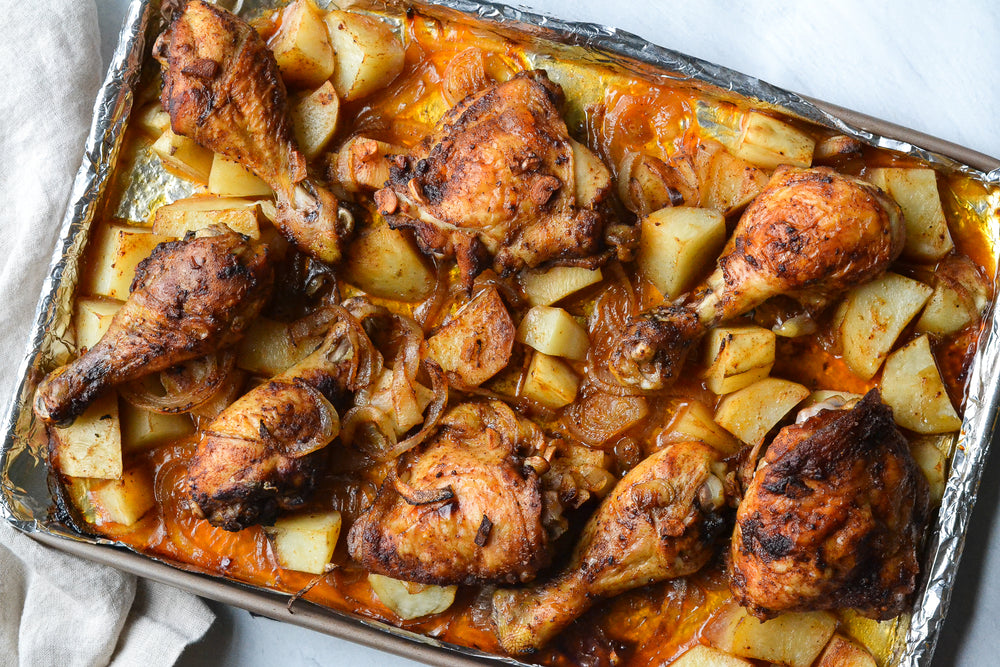 Roasted chicken is a simple and flavorful dish made around the world. Marinating the chicken with the Portuguese Allspice elevates this rustic sheet pan meal into something sublime. The addition of spiced potatoes makes a complete and delicious comfort meal. Russet potatoes, lovingly seasoned with onions, olive oil, and a generous sprinkle of Portuguese Allspice, come together to create a symphony of flavors that will tantalize your taste buds and leave you craving more.So, whether you're a seasoned home cook or a culinary adventurer looking to expand your repertoire, this Portuguese Roasted Chicken recipe is sure to impress. You can use this spice to substitute into just about any savory recipe calling for paprika, as a delightful upgrade. Sub in your favorite protein or swap in seasonal veggies, tofu, or tempeh cubes for a plant-based meal.