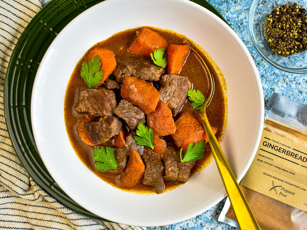 In a traditional Kalops Beef Stew, allspice is one seasoning that sets it apart from other beef stews. In this recipe, our chefs use a small amount of Gingerbread Spice that imbues warming spice notes cinnamon, nutmeg, allspice and clove. While gingerbread is best known for making sweets, this spice is perfect in savory recipes, too. The Gingerbread spice is a powerful flavor, so be sure to start with a small amount in this stew so that you don’t overwhelm the dish. This recipe is mostly hands-off so once all of the ingredients have been added to the pot, allow it to simmer until the beef is tender. The result is a fragrant, thick and savory beef stew that is perfect for cozy evenings by the fireplace.