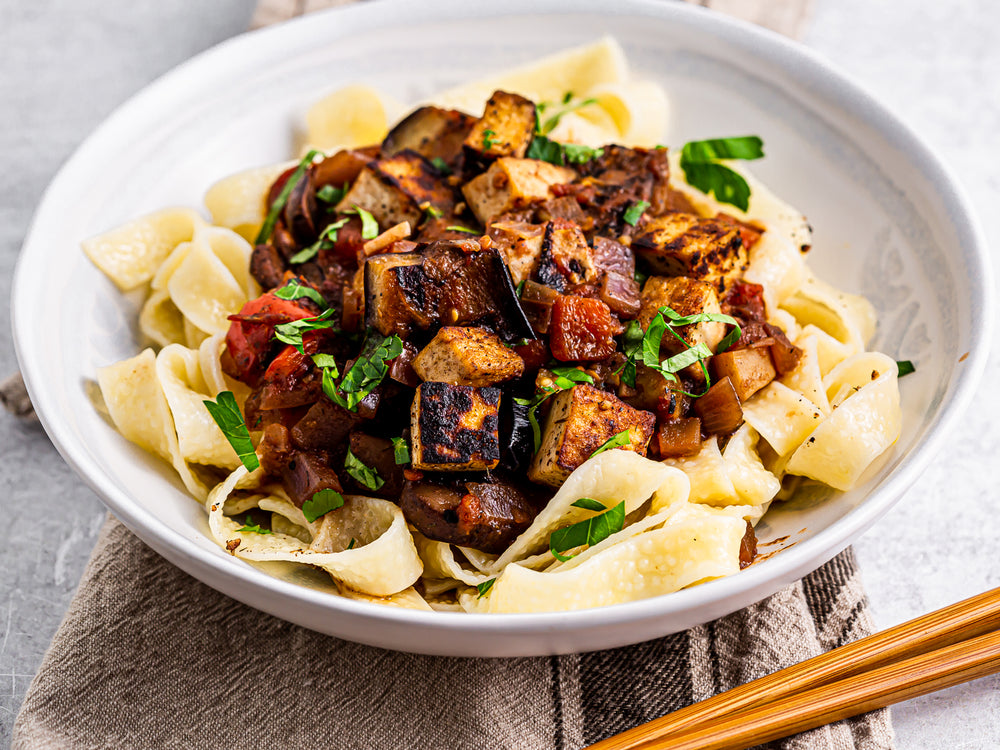 Central Asia is a lesser known region of Asia, but well worth a stop in our culinary exploration of the world. Our chefs invite you to make this vegan Tofu Laghman recipe—a dish that embodies the vibrant flavors and rich history of the region's beloved laghman noodle dishes in a plant-based format. Laghman, a staple dish of Central Asian cuisine, traces its origins back centuries, is especially popular in Kazakhstan and Kyrgyzstan,where it is considered a national dish of the local Uyghur and Dungan ethnic minorities that trace roots to Western China.