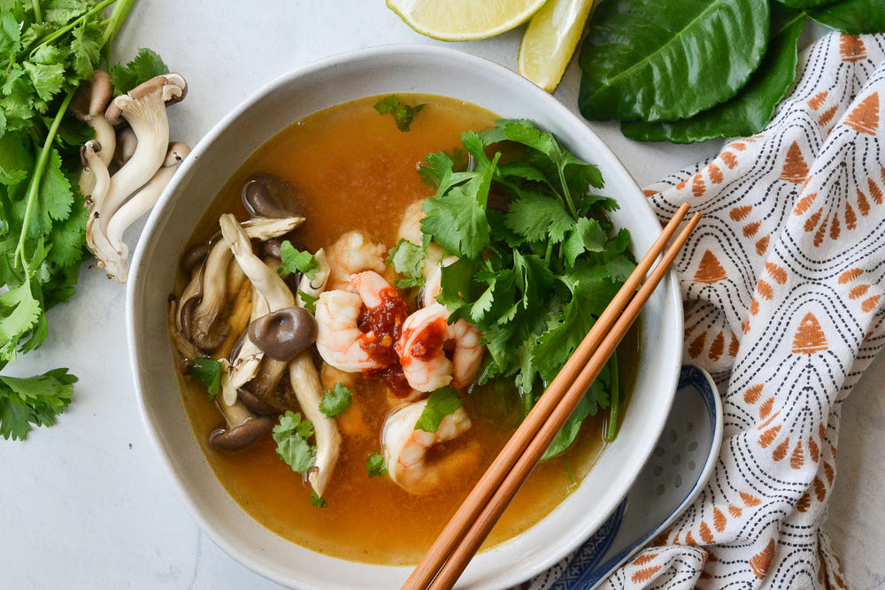 Tom Yum soup is a popular Thai dish known for its spicy, sour, and aromatic flavors. Brought to the world by Thai restaurants, Tom Yum Soup has become a revered emblem of Thai cuisine. It's typically made with a combination of ingredients such as lemongrass, kaffir lime leaves, galangal (a cousin of ginger), chili peppers, fish sauce, and lime juice. This soup often includes shrimp or chicken, but it can easily be adapted into a vegetarian version using vegetable stock, mushrooms, and tofu in place of meat ingredients. Fresh galangal is citrusy, and slightly earthy, with hints of pine and ginger. But it's more floral and peppery than ginger. You can buy galangal in specialty or Asian markets and use it instead of ginger for an authentic flavor. This humble soup expertly balances citrusy-acid notes from the lime juice and Kaffir Lime with the herbal aromas from lemongrass and cilantro - the result is a sublime dance of flavor. In Thai tradition, sharing Tom Yum Soup embodies warmth, conviviality, and hospitality. It's a communal celebration uniting people over its flavorful tapestry—an invitation to immerse yourself in your community of family and friends. We think this easy to make dish will grace your dinner menus for years to come.