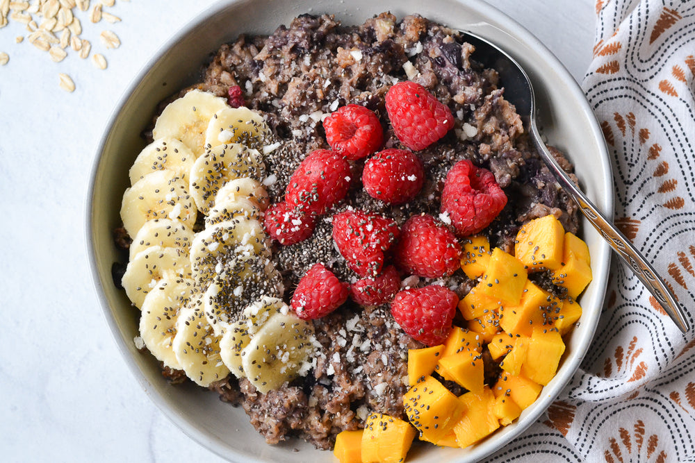 Top with more fresh fruit and assorted nuts, shredded coconut, or chia seeds.