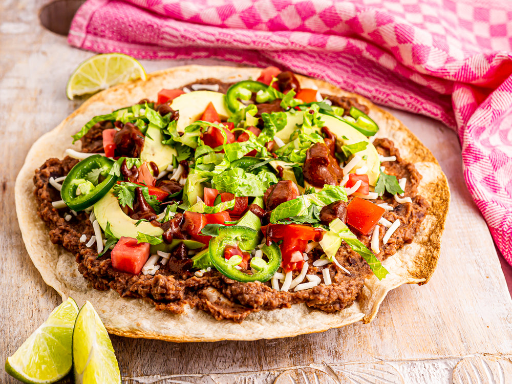 The soul of this dish lies in the Refried Black Beans, simmered to perfection aromatics and a dash of our Mexican Molé spice—an homage to the complex, nuanced flavors that define authentic Mexican cooking. Molé adds more than its share of flavor for a depth that's as rich as the cultural history behind it. Tlayudas themselves are a blank canvas awaiting a riot of textures and flavors. We use vegan cheese for creaminess, avocado slices for decadence, jalapeños for a kick, crisp romaine for freshness, juicy tomatoes for brightness, and a generous sprinkle of cilantro for that herbaceous charm. Customize this recipe with seasonal and favorite ingredients. Drizzle with lime, squeeze a wedge, and savor not just a meal, but a journey into the heart and flavors of Oaxaca.