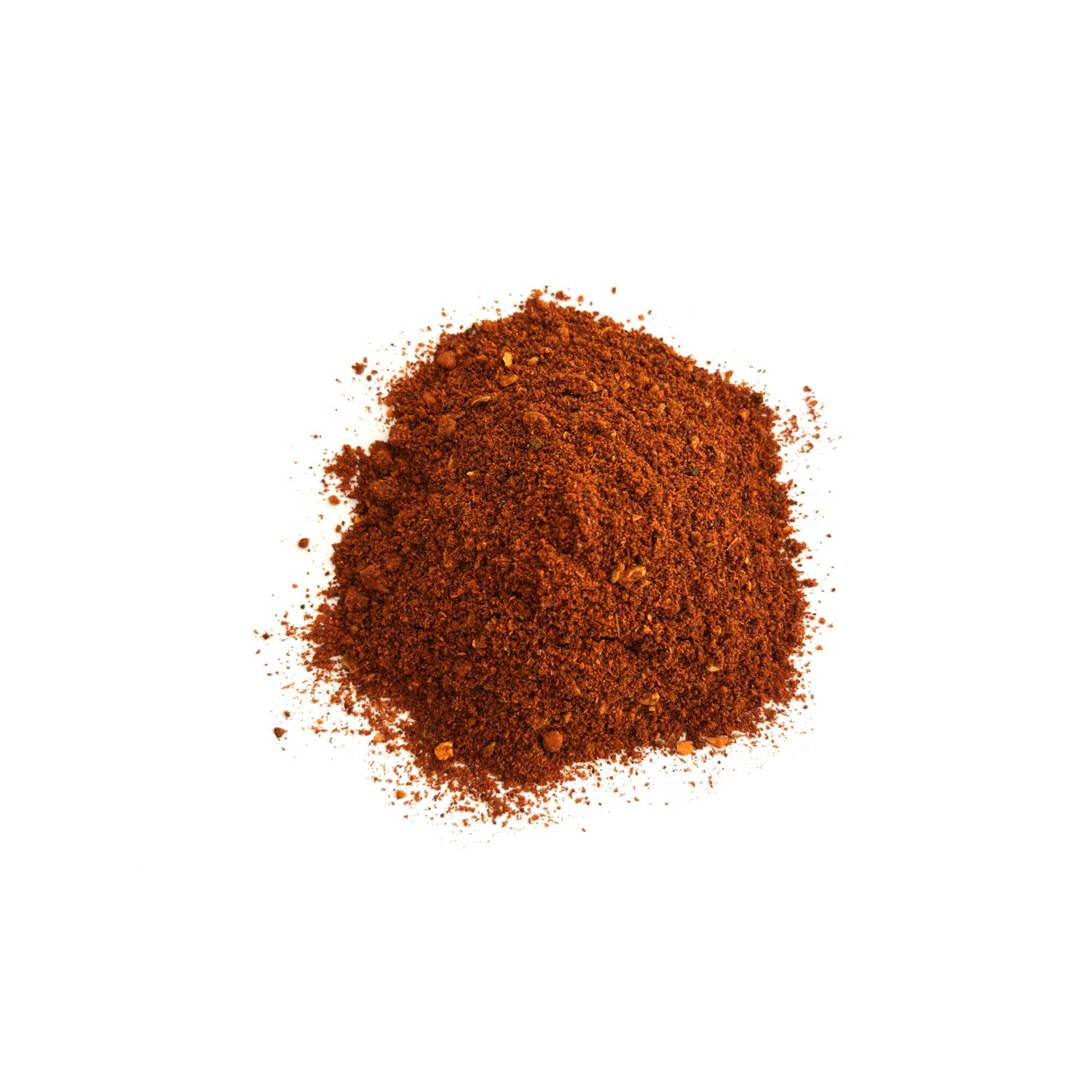 Contains: paprika, ancho chili, cumin, nutmeg, black pepper, cinnamon, allspice, oregano, ginger, cloves, lemon peel, orange peel, bay leaf.