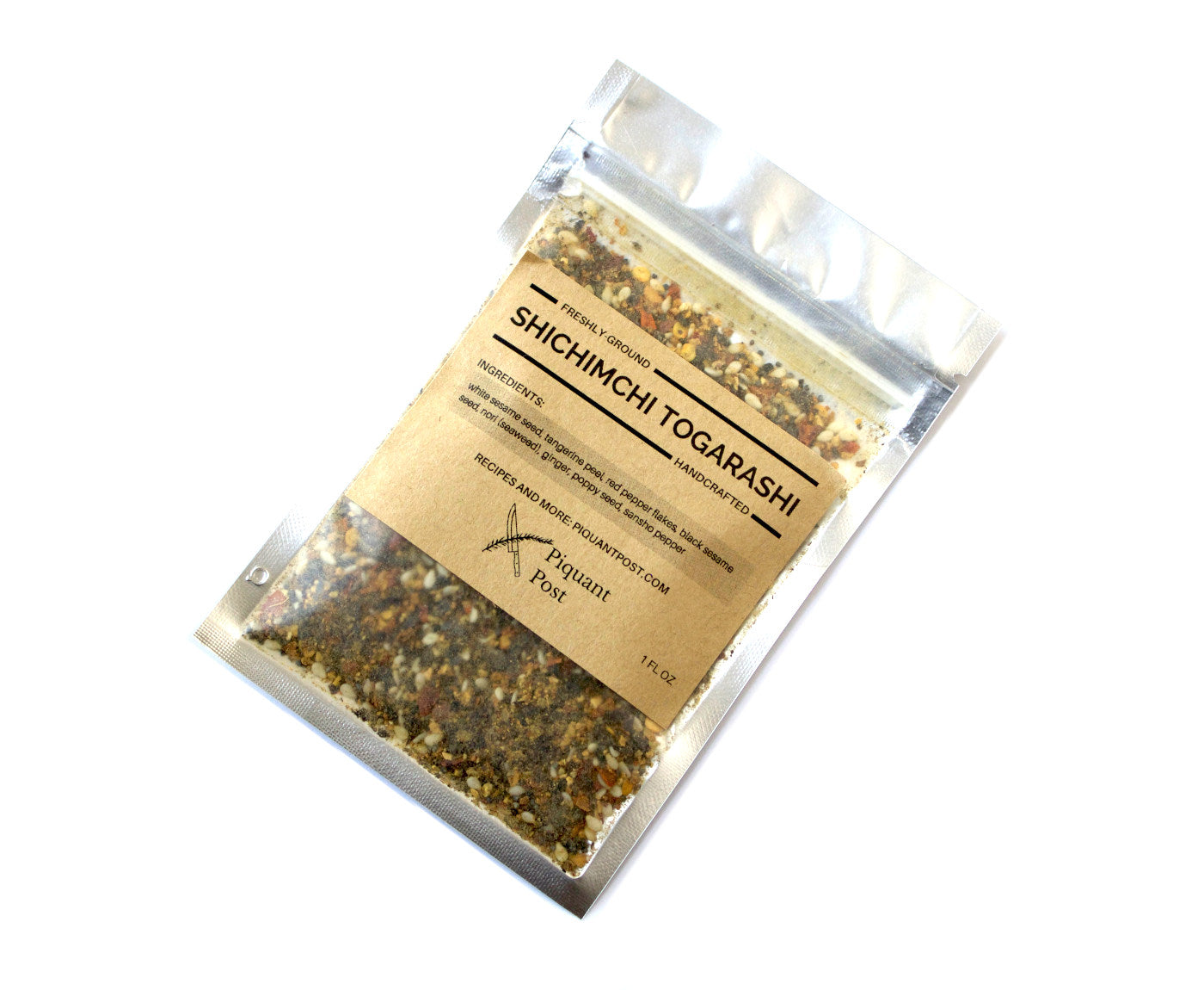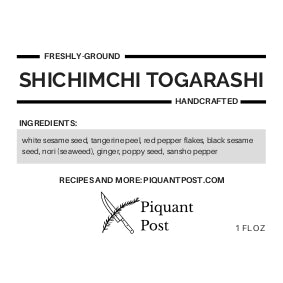 Contains: red pepper flakes, tangerine peel, sansho pepper, white sesame seed, black sesame seed, nori (seaweed), and ginger.