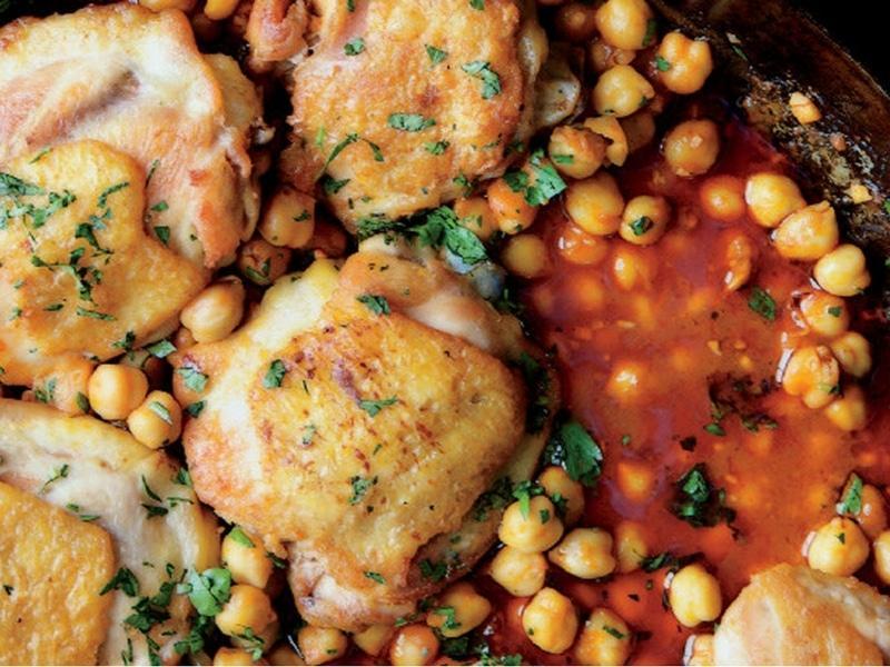 Any cut of chicken will work with this lemon harissa chicken recipe. Chicken thighs or legs are particularly good for this dish because they cook quickly and their fat balances the heat from the harissa.